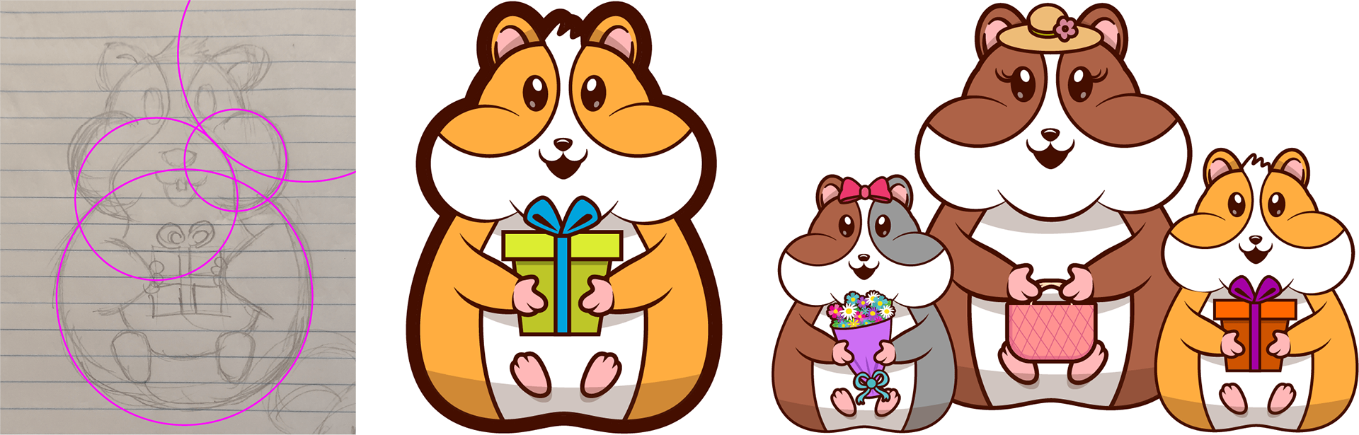 Boceto de mascota y resultado final